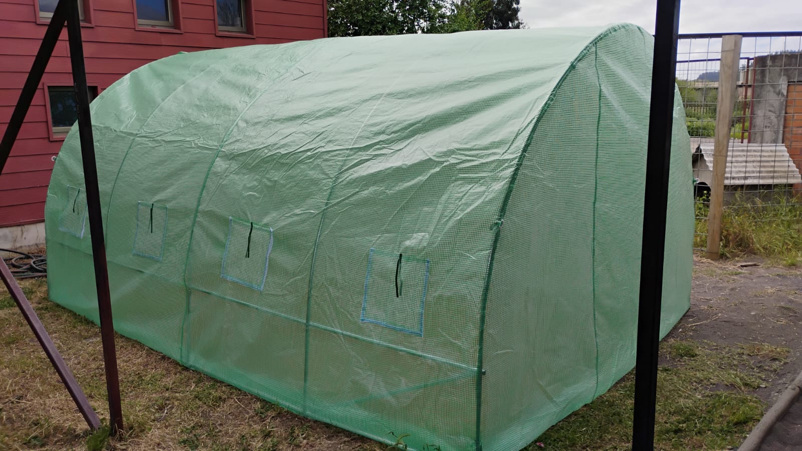 Aula verde consiste en la creación de un invernadero sustentable, ubicado en un espacio disponible dentro del establecimiento. Se elabora a base de estructura metálica, nylon o acrílico trasparente, mesones, compostera, maseteros, tierra de hoja y fertilizantes, alimentado con energía solar.