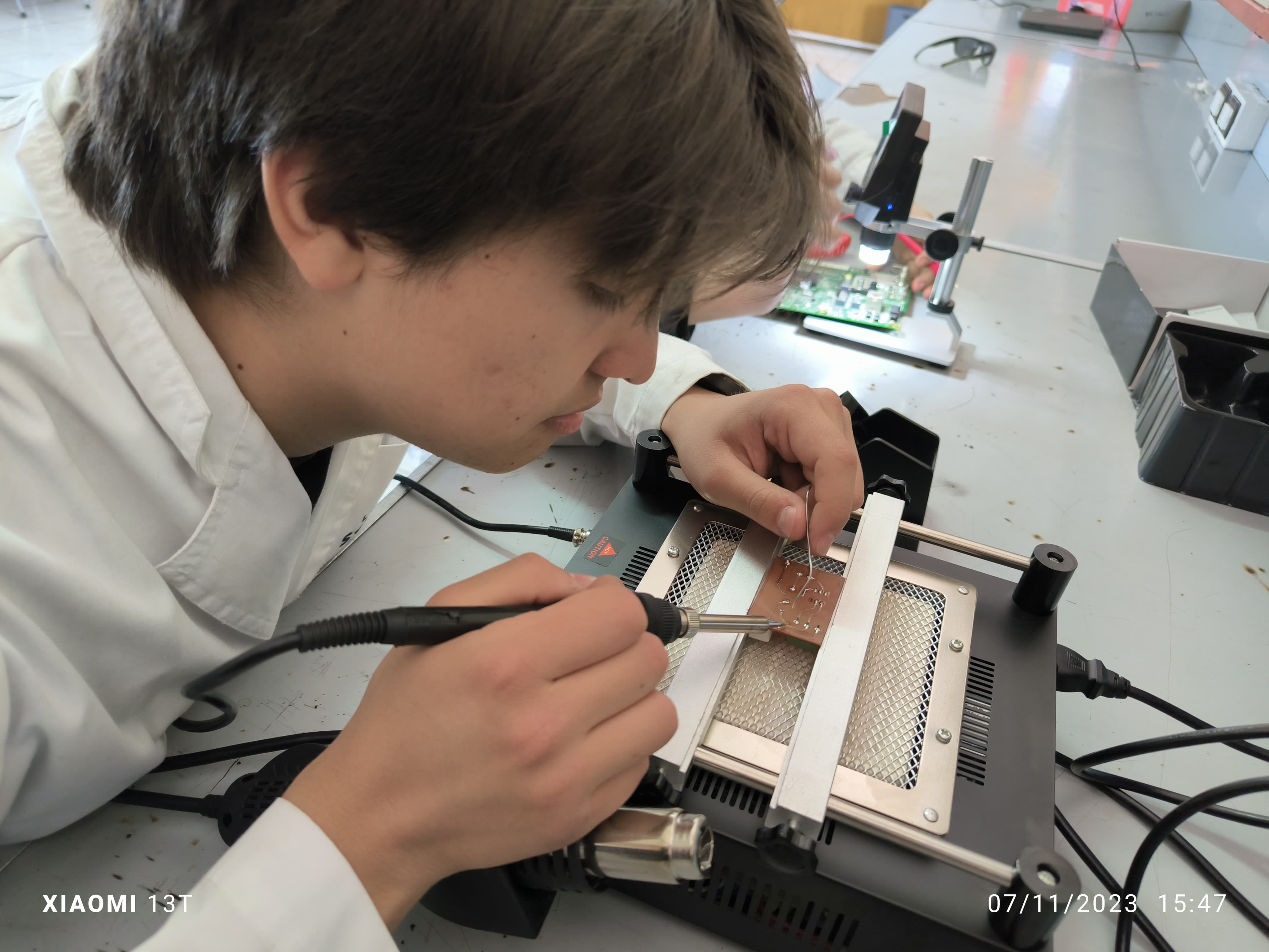 Este proyecto consiste en obtener instrumentación para que los alumnos aprendan diferentes tecnologías en el ambito de la electrónica, hemos conocido el montaje de placas Through-hole (PCB TH), la cual, consiste en hacer agujeros y soldarlos de manera pasante (traspasen la placa), pero con toda esta instrumentación podemos trabajar con una tecnología totalmente diferente: Placas SMD (del inglés surface-mount device) (en español Dispositivos de Montaje Superficial), esta tecnología tiene metodologías de montaje totalmente diferentes, en vez de agujerear la placa solamente se montan y soldan en la superficie de la placa, además tiene una diferencia significativa, el tamaño, la tecnología SMD es mucho mas pequeña que la convencional.