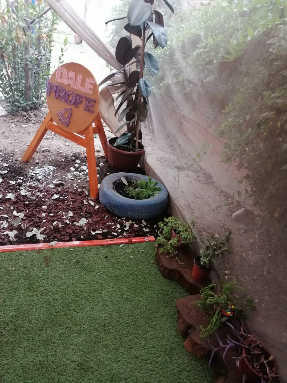 Habilitar un espacio con árboles, hierbas aromáticas estimulara su capacidad olfativa conocer a través de los aromas el bienestar que provocan en nuestro organismo, lo visual se estimulara a través de los colores de la plantas, flores y frutas. El tacto será estimulado por un camino sensorial con piedritas, corcho y arena, para lo auditivo contaremos con música o sonidos de la naturaleza. Para fomentar nuestro sello ambientalista reutilizaremos elementos para uso decorativo, nuestro sello valórico espiritual nos permitirá dar gracias en este espacio por todo lo que es creado y cultivado a raíz de nuestra laboriosidad y trabajo.