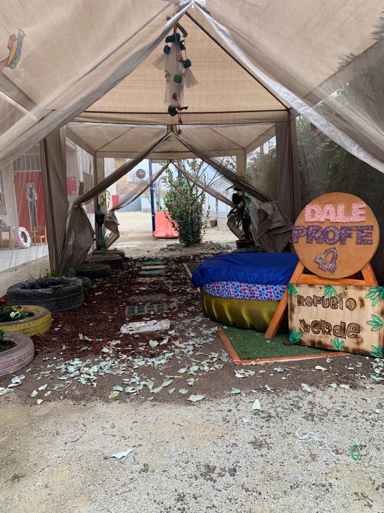 El proyecto consiste en habilitar un espacio de exploración y experimentación sensorial de la naturaleza, una especie de capsula verde que estimule los sentidos de los niños y niñas permitiéndole relacionarse con elementos presentes en el entorno natural, pero que en su comunidad cercana está desprovistos de ello, entrar en este punto de conexión verde es para conectarse a través de sus sentidos.