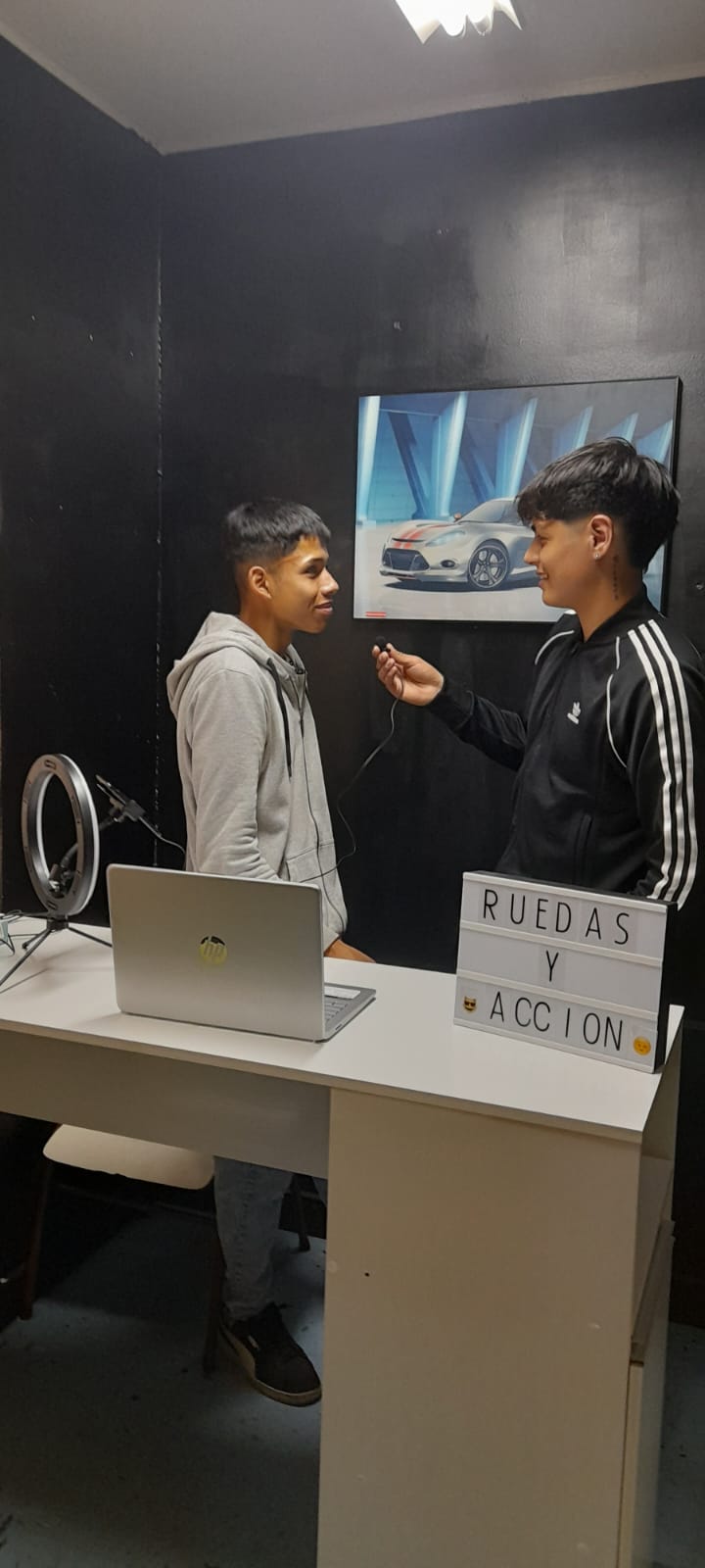 Se busca crear un set de grabación en que los estudiantes de la carrera de mecanica automotriz y los estudiantes del taller vocacional den vida al program Ruedas y Acción, el que se trasnmitira una vez al mes mediante redes sociales, teniendo como eje de acción la Educación Vial, incluyendo en el espacio entrevistas, encuentas, notas en terreno, etc.